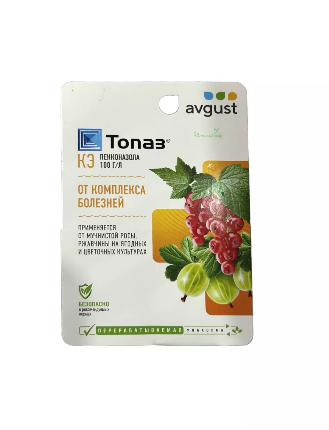 Топаз - системный фунгицид с профилактическим и лечебным действием, обладает высокой эффективностью против возбудителей мучнистой росы и др болезней.