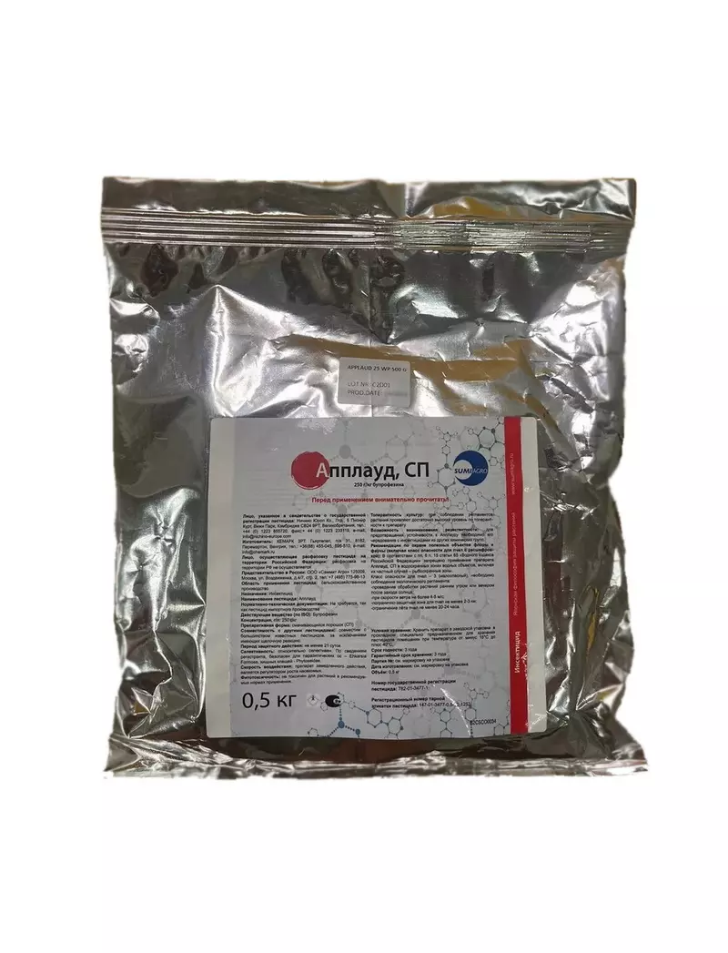 Апплауд СП препарат который будет безопасен для растений, но вреден для насекомых, а так же предоставит результат от их избавления. Подходит для почвы, субстраты, гидропоники, лучше всего использовать в теплицах, способ использования опрыскиванием по листу. Использовать в сухую и безветренную погоду, утром или вечером.