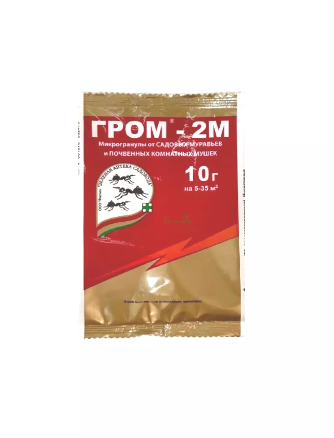 Гром-2 предназначен для использования на приусадебных участках, в теплицах, квартирах. Препарат выпускается в форме гранул, которые высыпают в почву и в цветочные горшки с землёй. Благодаря такому виду он легко попадает в ходы муравьёв и убежище почвенных мошек.
