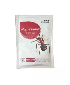 Основная информация Гранулы от садовых и домовых муравьев Муравьед Супер, 120 гр. Инсектицид контактно-кишечного действия против муравьёв. Средство от насекомых, попадая с пищей в организм муравьёв, он воздействует на нервную систему насекомых, вызывает паралич и уже в течение первых трёх...