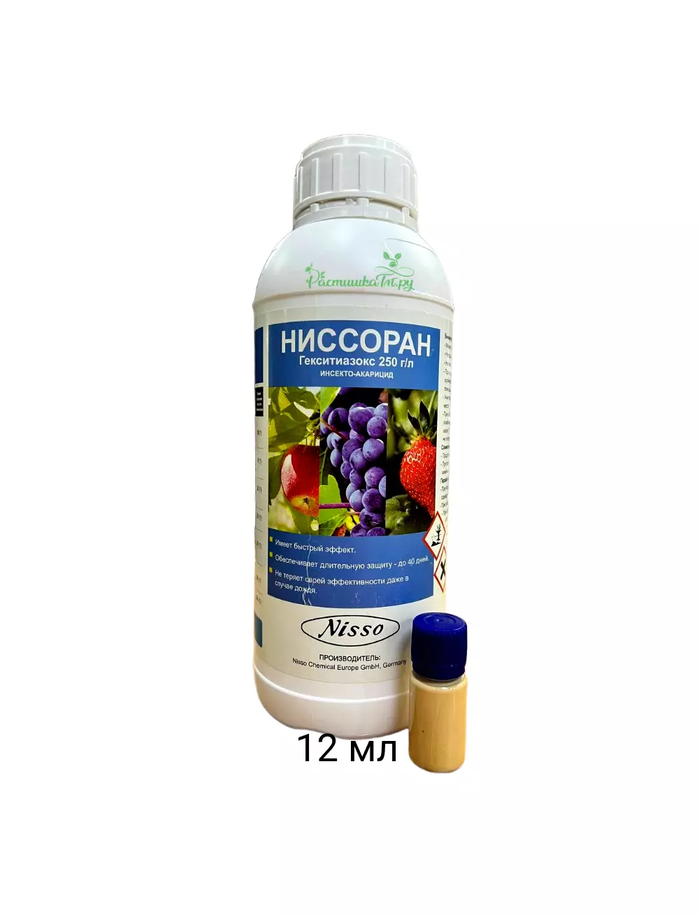Ниссоран — современный акарицид, который действует на яйца, личинки и нимфы многих видов клещей. Преимущества препарата: широкий спектр акарицидного действия;