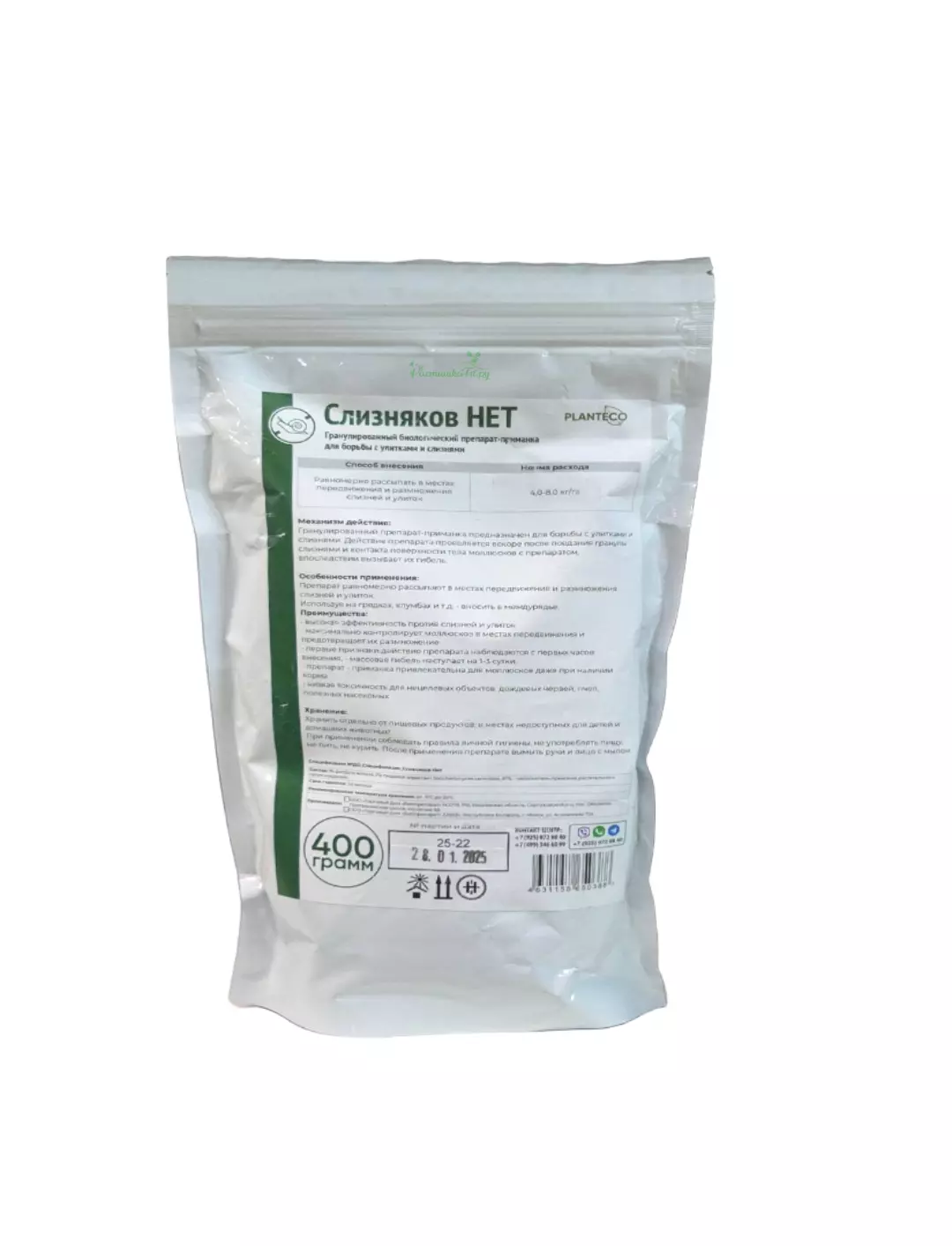 Слизняков НЕТ – гранулированный биологический молюскоцидный препарат-приманка желудочно-контактного действия для борьбы с улитками и слизнями. Для использования на приусадебных участках, спортивных зонах, в производственных, санитарно-бытовых, хозяйственных постройках (помещениях) и других объектах, в местах массового отдыха, в подвалах, подсобных помещениях и в местах расположения пожарных емкостей и мусорных контейнеров, во всех местах развития и размножения моллюсков. Препарат широко применяется для защиты овощных и плодово-ягодных культур от различных видов слизней и улиток. Действие препарата проявляется вскоре после поедания гранул слизнями и контакта поверхности тела моллюсков с препаратом, впоследствии вызывает их гибель.