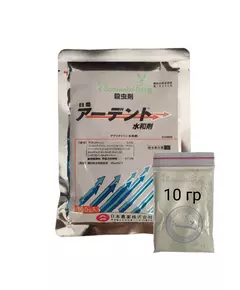 Основная информация уникальный инсектицид против тли, щитовки, белокрылки, трипсов, листоблошек, мучнистого червеца и цикадок. Способ применения: 1 гр на 2-4 л воды, опрыскивать по листу, желательно добавлять прилипатель. От мучнистого червеца и щитовки - проливать раствором 1 гр на 2 л воды.